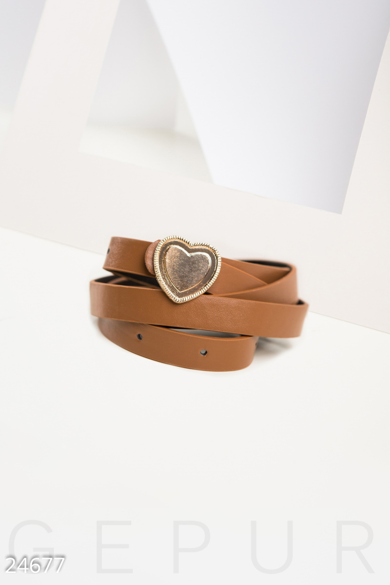 Узкий ремень с ложной металлической пряжкой в форме сердечка.