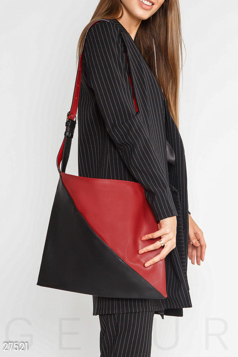 Аккуратная женская сумка с регулируемым плечевым ремешком, выполненная из двухцветной эко-кожи.