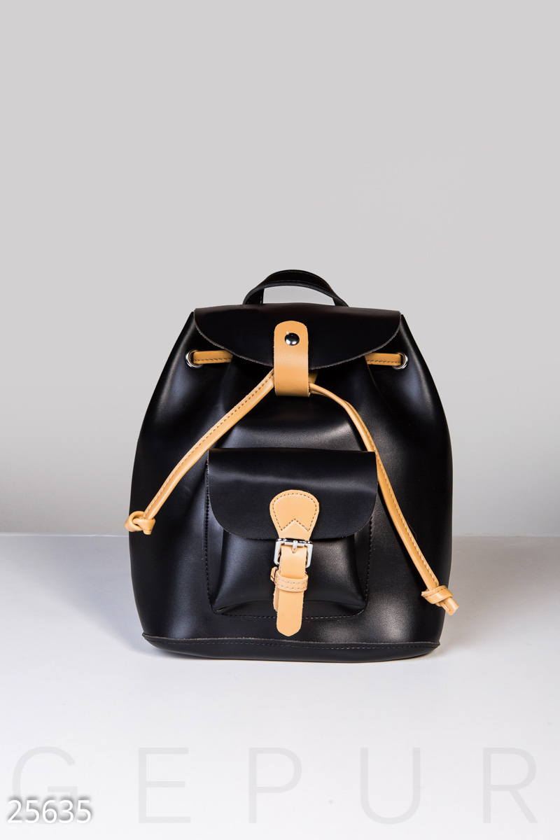 Стильный рюкзак с клапаном, накладным карманом, узкими регулируемыми лямками и контрастной застежкой.