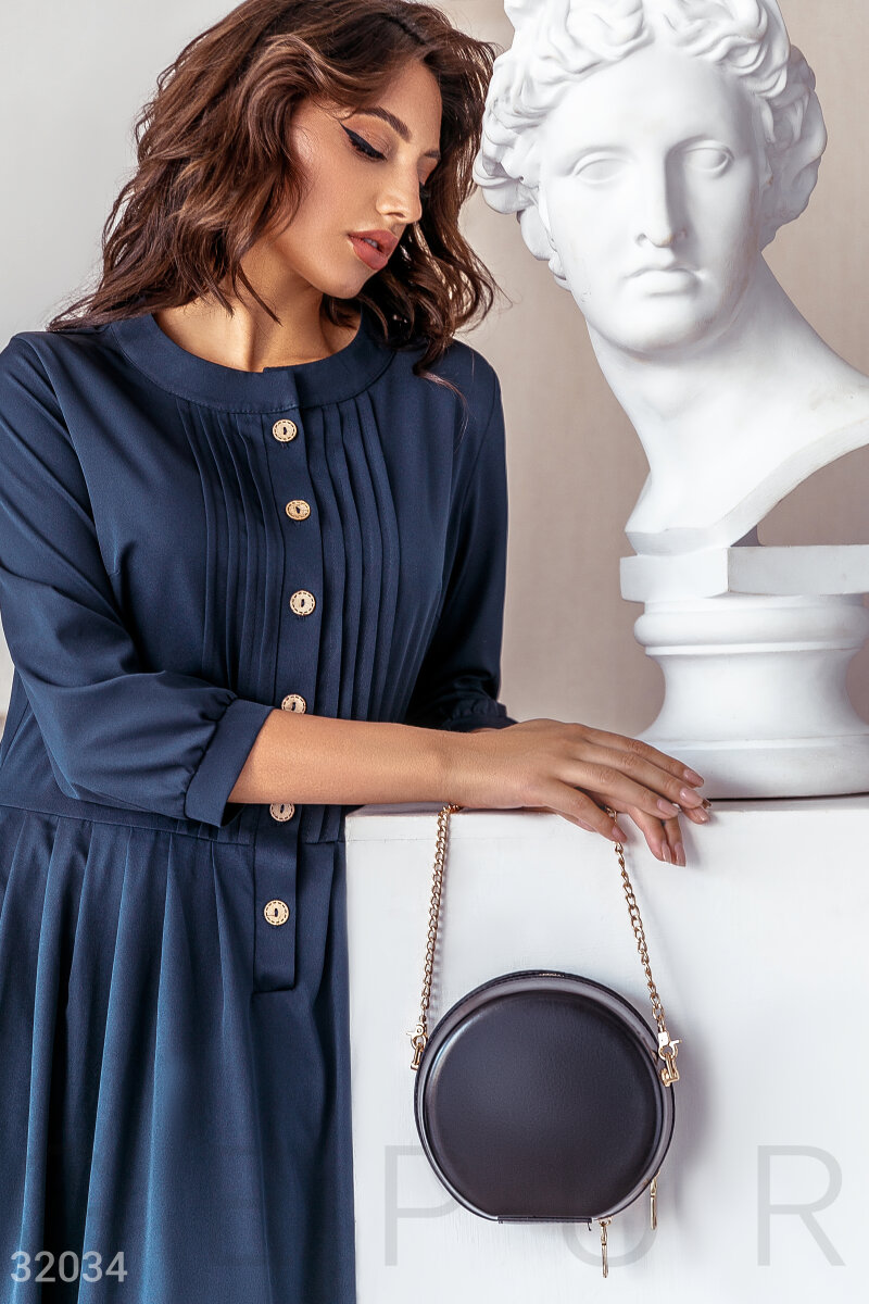Круглая черная сумка Leather trend