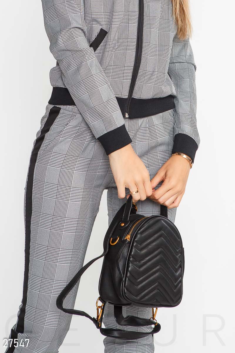 Небольшой городской рюкзак овальной формы с короткой ручкой, съемными регулируемыми лямками, которые трансформируются в плечевой ремешок, и вставками из стеганой эко-кожи.